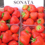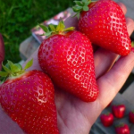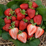 Крупные темно-красные ягоды с глянцевой поверхностью массой 30 граммов. Клубника имеет правильную сердцевидную форму и выраженный аромат. Мякоть сорта Мея сочная и плотная со сладким десертным вкусом, разбавляется легкой кислинкой.