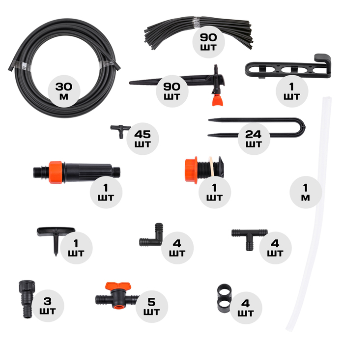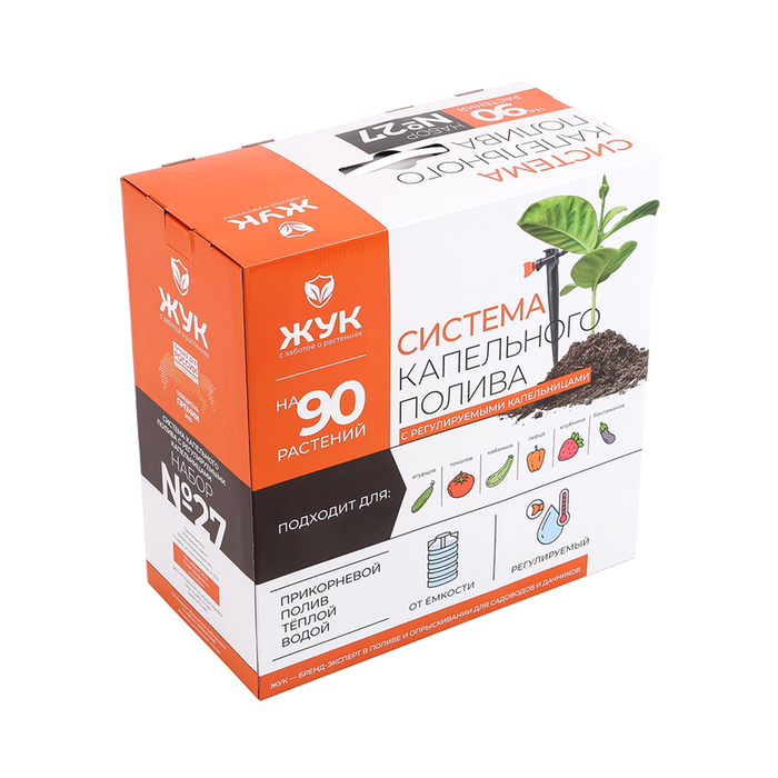 Набор для капельного полива от ёмкости, с регулируемыми капельницами, на 90 растений, «Жук»