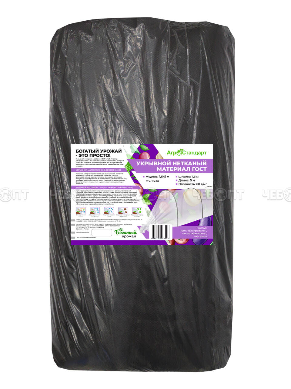 5М Укрывной материал (спанбонд) АгроСтандарт МУЛЬЧА плот. 60 (ширина 1,6 м, длина 5 м) с СУФ ГОСТ [5] СобПр