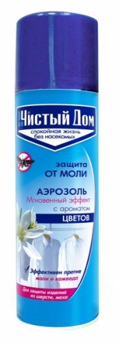 Для обработки помещения площадью 25-30 кв.м достаточно распылять «Чистый Дом аэрозоль от моли и кожееда» в течение 3-5 секунд.