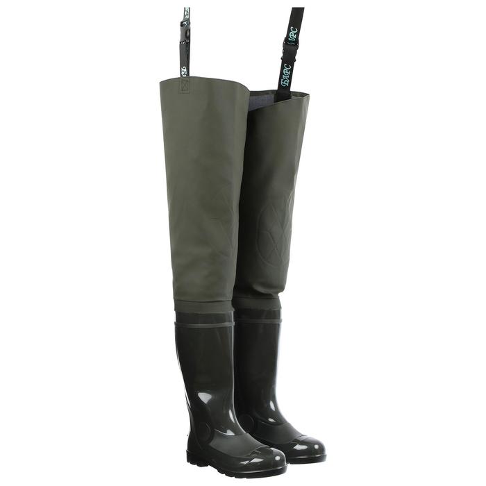 Высокие рыболовные сапоги предназначены для защиты ног от воды. Нижняя часть сапогов изготовлена методом двухкомпонентного литья из ПВХ. Верхняя часть — надставка из водооталкиваюшей ткани винитол.