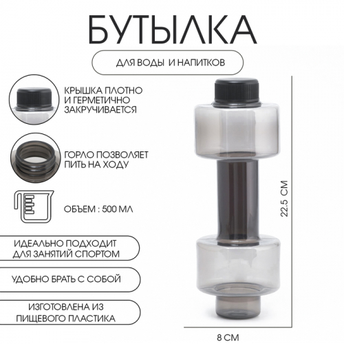 Она изготовлена из качественного и безопасного пищевого пластика. Бутылка оснащена крышкой, которая обеспечивает герметичность и предотвращает протекание.
