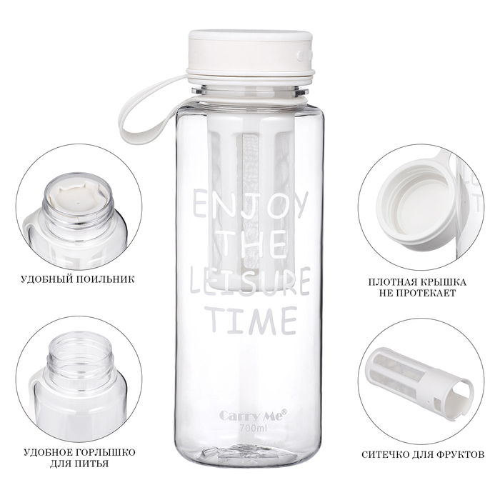 Бутылка для воды, 800 мл, 22×10.5 см, с ситом, белая
