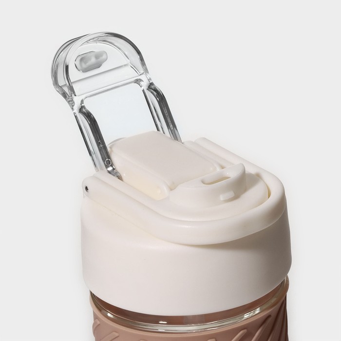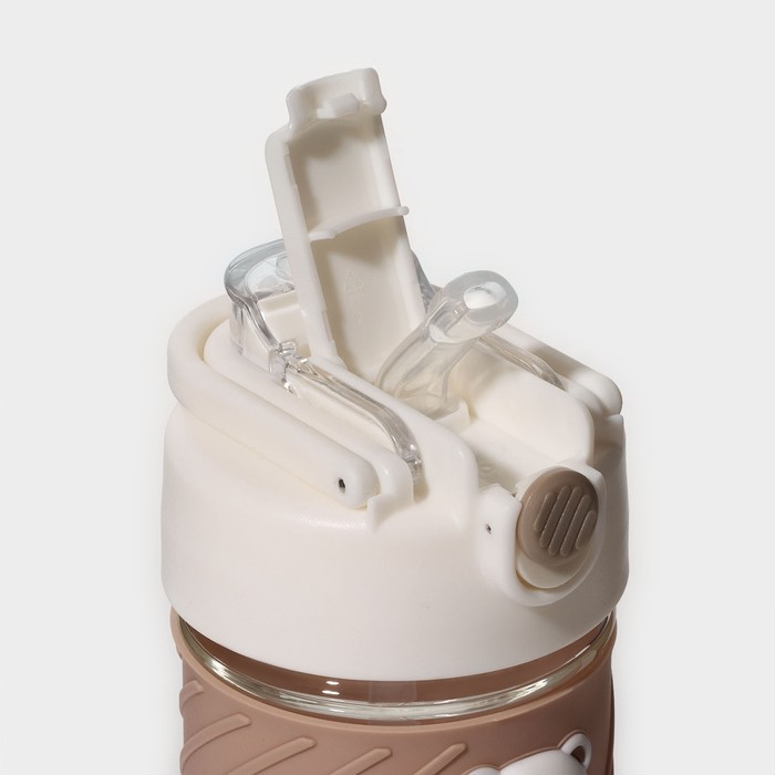 Бутылка для воды «Бьорн», 400 мл, с крышкой и трубочкой «Бьорн», стекло, бежевая