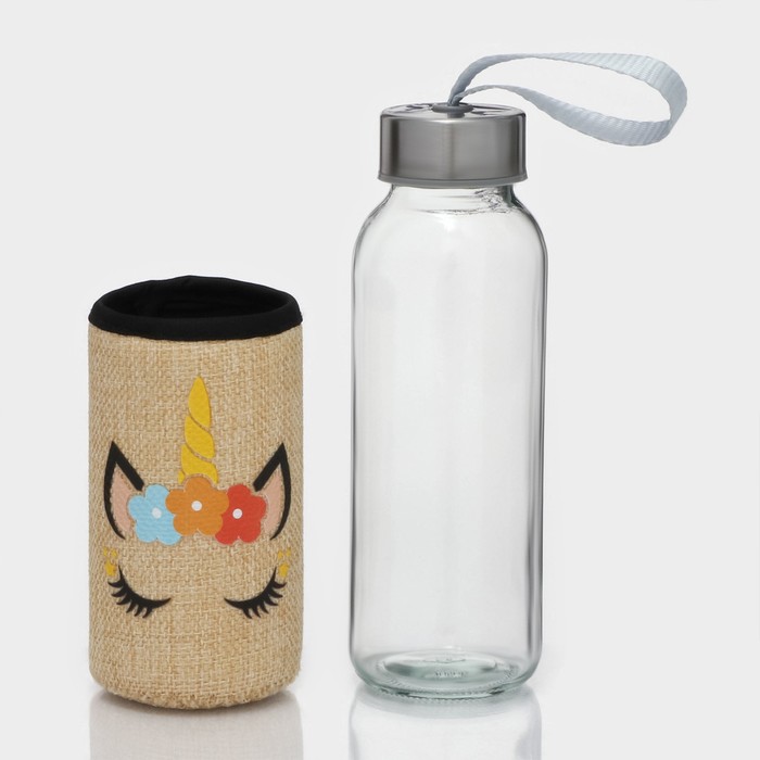 Бутылка для воды стеклянная в чехле «Единорожек», 300 мл, h=16.5 см