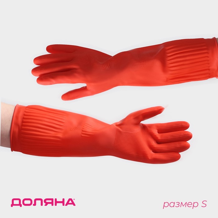 Перчатки хозяйственные Доляна, размер S, длинные манжеты, латексные, красные