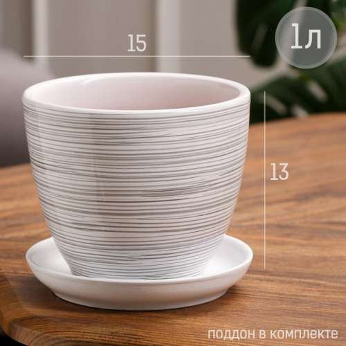 Горшок для цветов «День», керамический, с поддоном, 1 л, белый с полосками