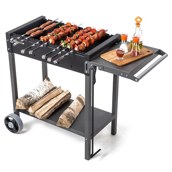 Мангал «MAH 202», 106.5×52×79.7 см, 2 мм, колёса, боковая полка