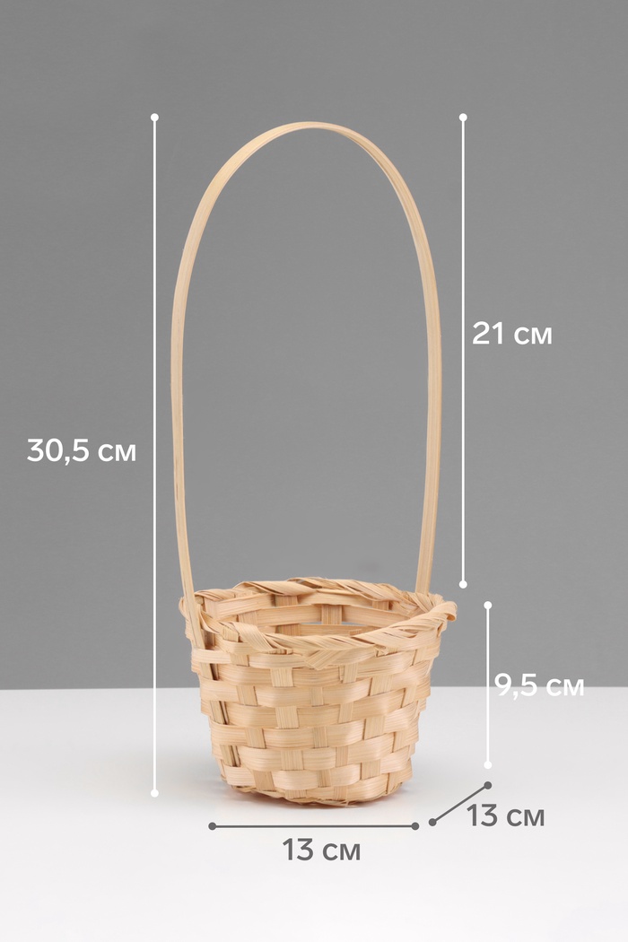 Корзина плетёная, 13×13×9.5 см, ручка h=21 см, бамбук, натуральный цвет, Greengo