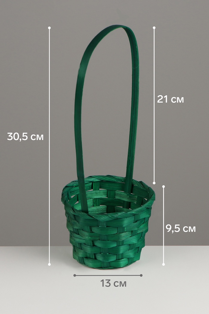 Корзина плетёная, 13×13×9.5 см, ручка h=21 см, бамбук, зелёная, Greengo