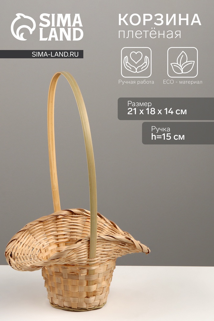 Корзина плетёная, 21×18×14 см, ручка h=15 см, бамбук, натуральный цвет