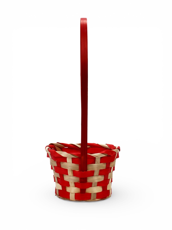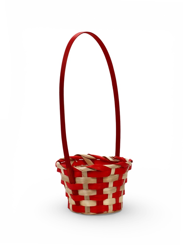 Корзина плетёная для хранения, 13×13×9.5 см, ручка h=21 см, бамбуковая, красно-бежевая, Greengo