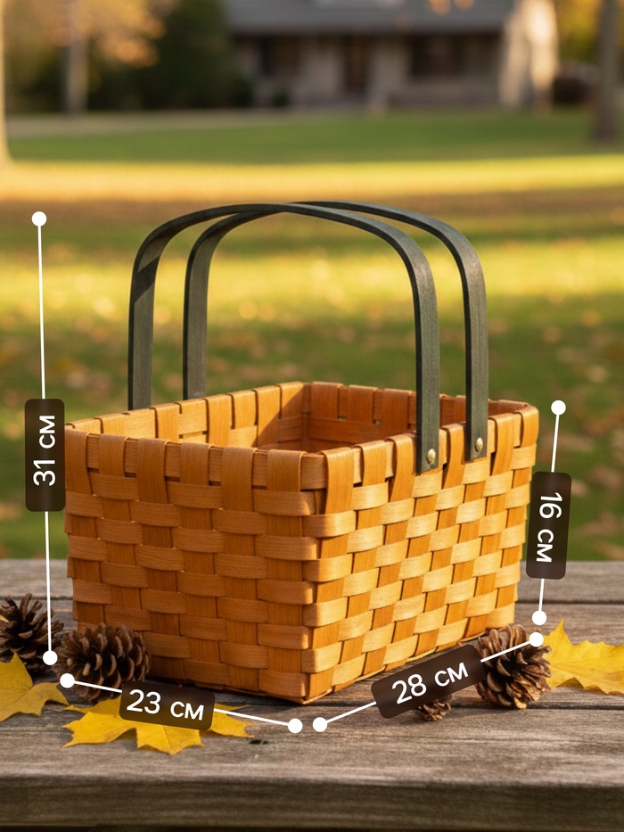 Плетёная корзина из дерева с ручкой — это практичный аксессуар для дома и дачи. Классическая форма и натуральный материал создают ощущение стабильности и уюта.