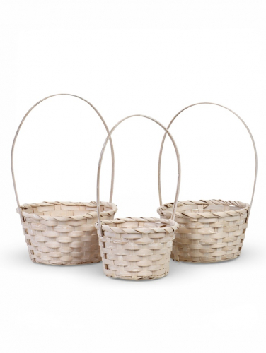 * Три корзины с разной высотой ручки: высота основания у всех корзин составляет 10 см, но общая высота с ручкой варьируется — 24, 26 и 28 см. Это создаёт ступенчатый эффект при совместном размещении.
