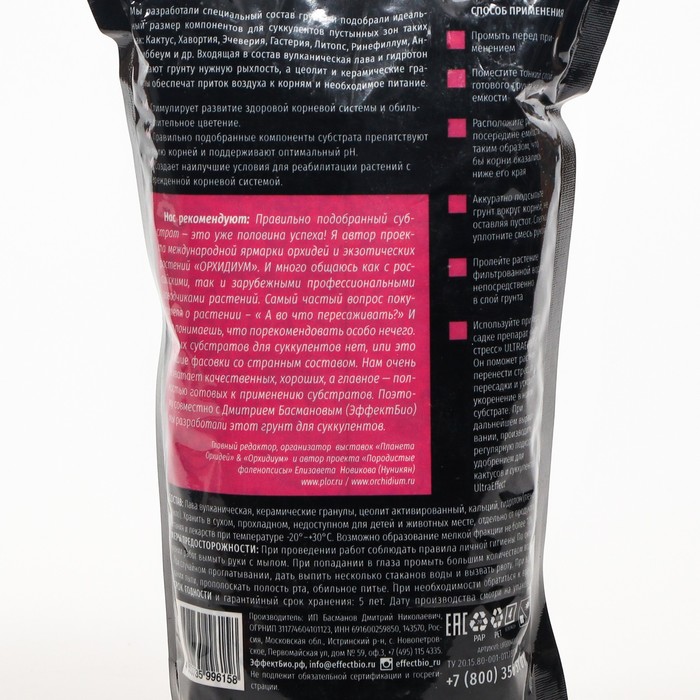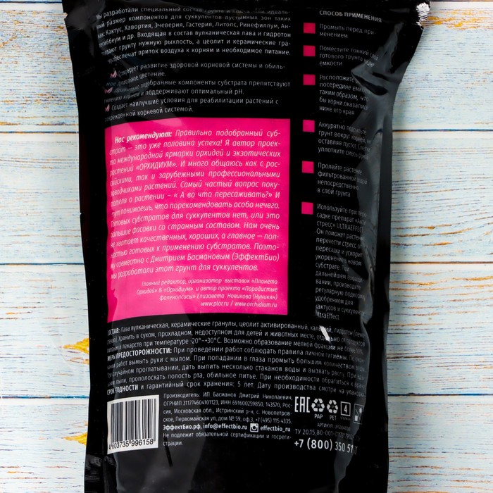 Грунт для выращивания Кактусов и Суккулентов Ultra Effect+ Mineral, 1.2 л