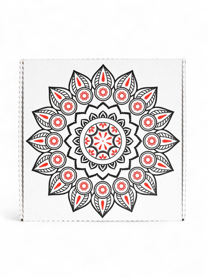 Коробка изготовлена из жёсткого гофрокартона, обеспечивающего сохранность содержимого при транспортировке. Белая внешняя поверхность с дизайнерским принтом делает упаковку не только функциональной, но и подарочной. Внутри – натуральный цвет крафта, который придаёт изделию минималистичный и экологичный вид. Идеально подходит для магазинов, мастерских или просто для упаковки подарка своими руками.