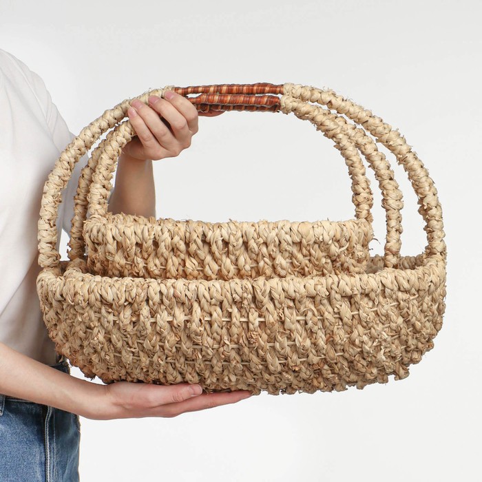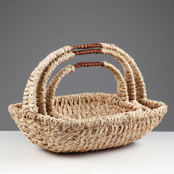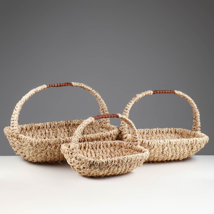 Корзина плетёная для хранения, бамбук, овальная, бежевая, набор 3 шт.