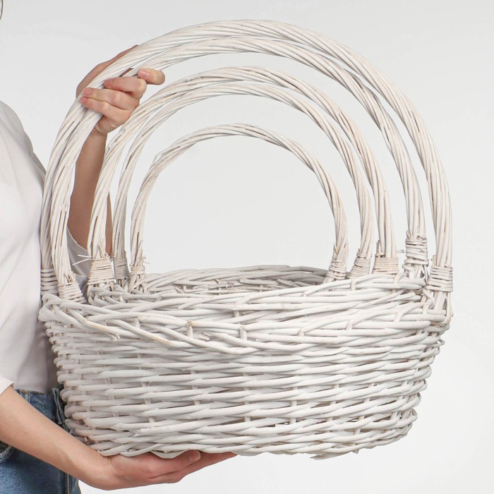 Корзина плетёная для хранения, ива, овальная, белая, набор 5 шт.
