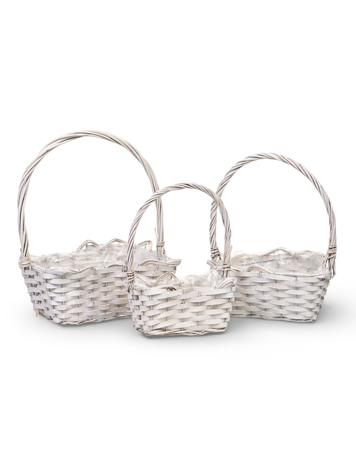 Корзина плетёная для хранения, лоза, прямоугольная, белая, набор 3 шт.