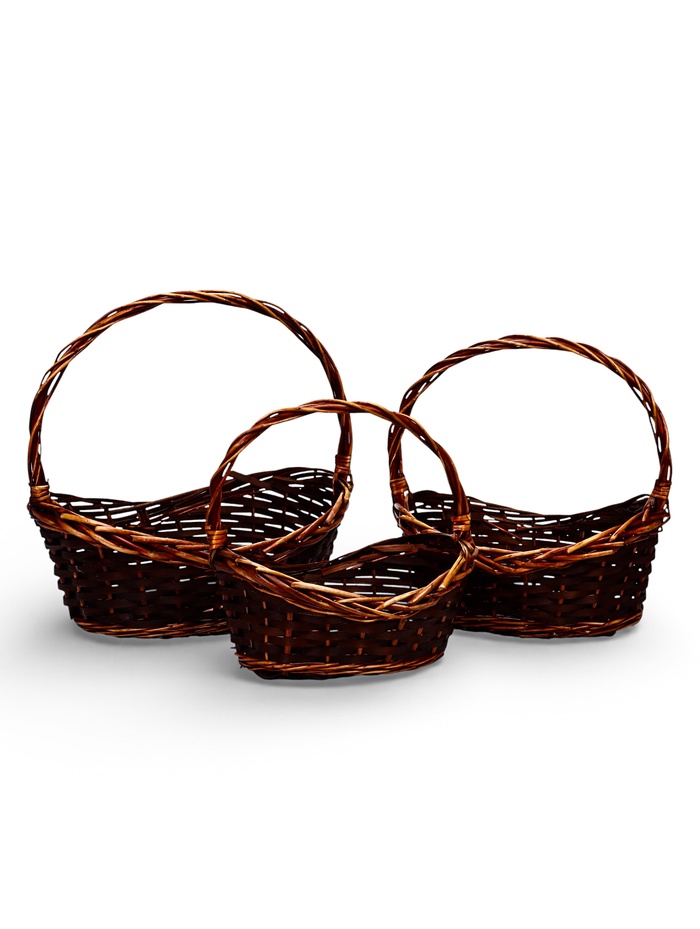 Корзина плетёная для хранения, лоза, тёмно-коричневая, набор 3 шт.