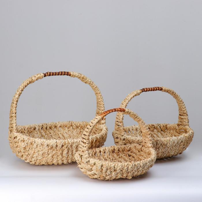Корзина плетёная для хранения, ротанг, кукурузное волокно, светлая, набор 3 шт.