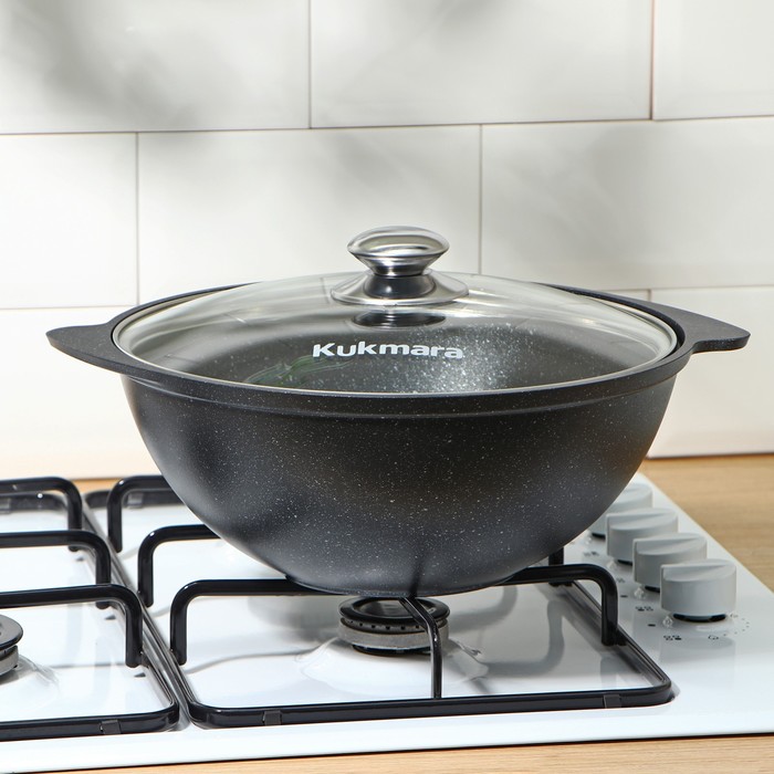 Казан KUKMARA, 3.5 л, литые ручки, антипригарное покрытие, стеклянная крышка, литой алюминий, серый