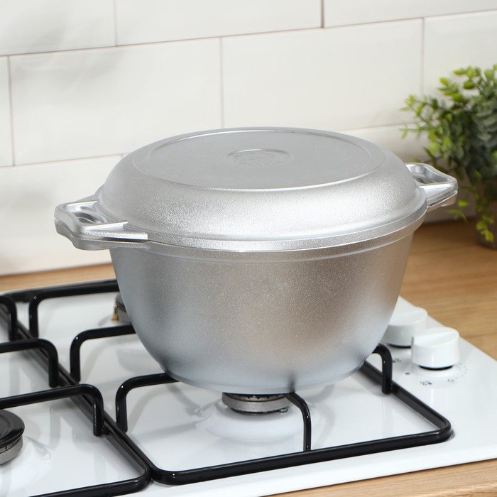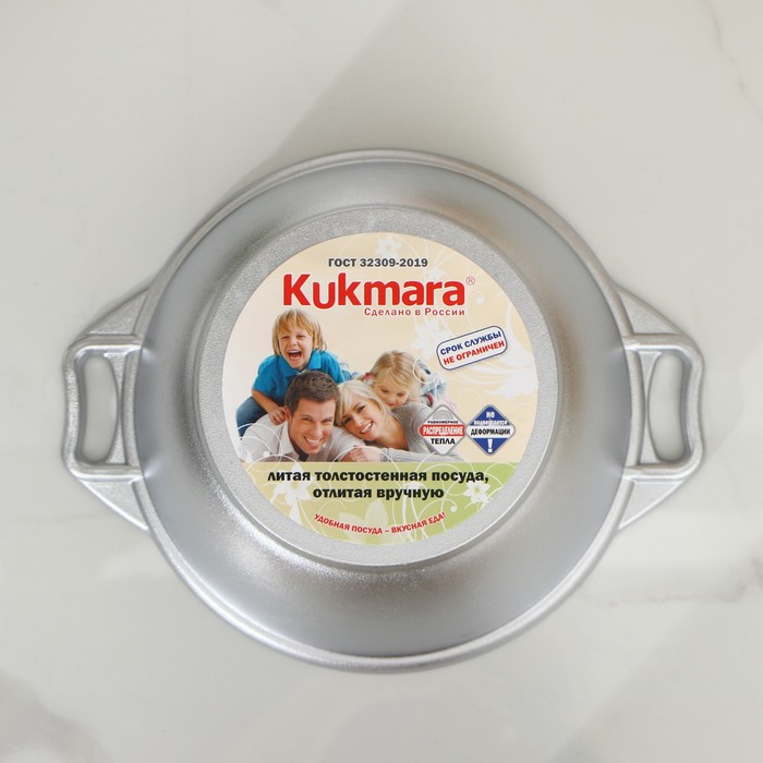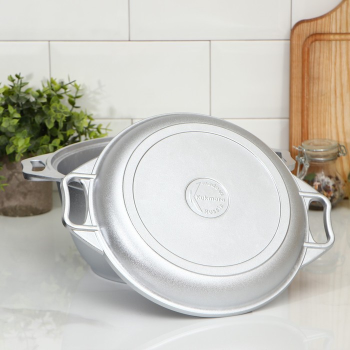 Казан KUKMARA, 3 л, крышка-сковорода, литые ручки, литой алюминий, серебристый