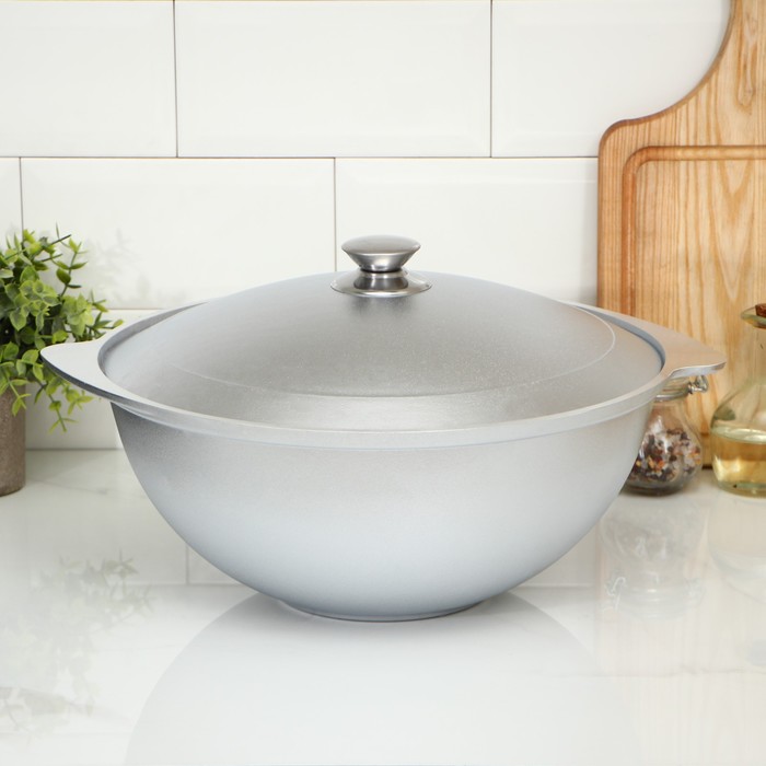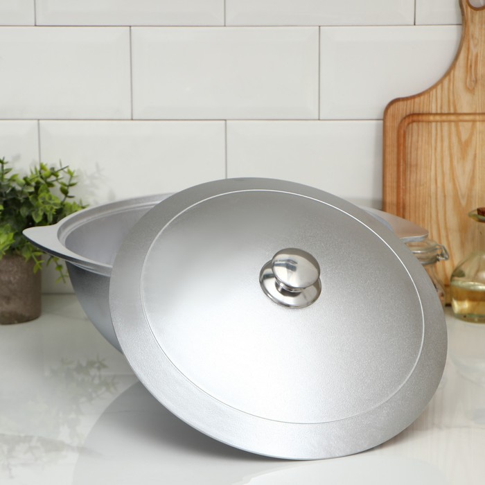 Казан KUKMARA, 6 л, с крышкой, литой алюминий, серебристый