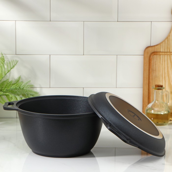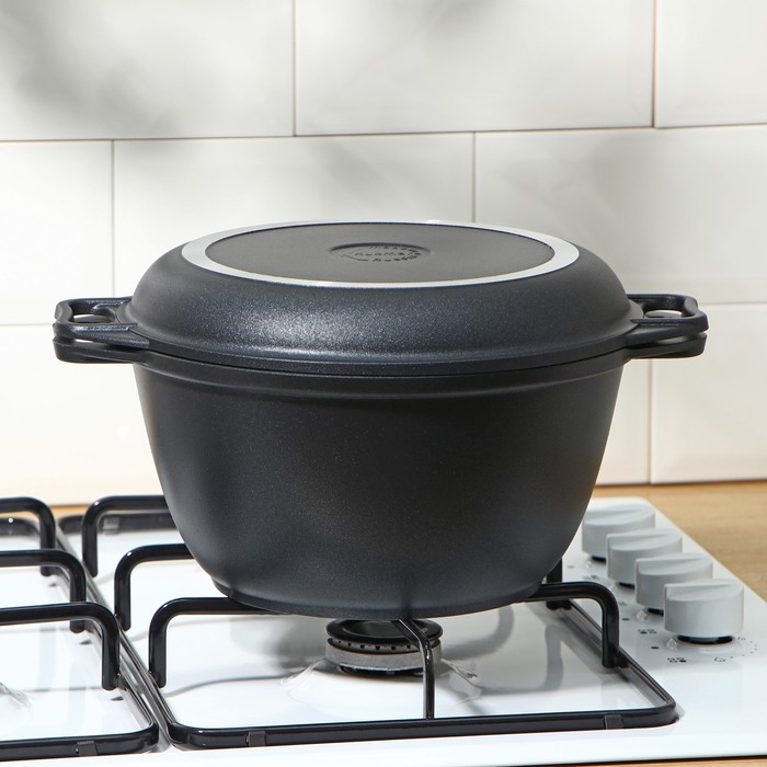 Казан KUKMARA «Традиция», 3 л, крышка-сковорода, литые ручки, антипригарное покрытие, литой алюминий, чёрный