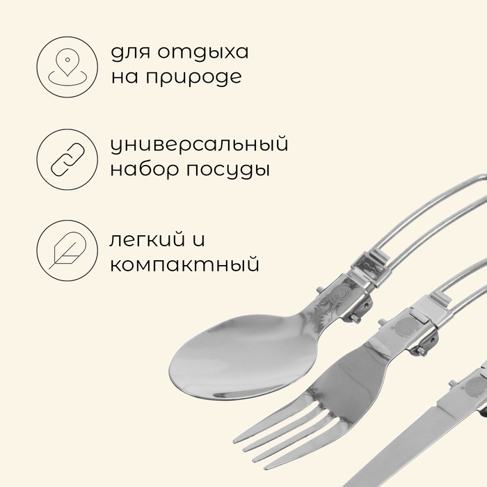 Набор туристических приборов maclay: нож, вилка, ложка, складные, нержавеющая сталь