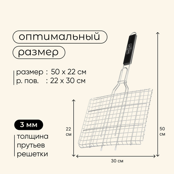 Решётка - гриль для мяса maclay, 22×30 см, нержавеющая сталь, для мангала