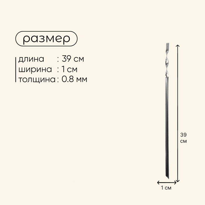 Шампур Maclay, угловой, толщина 0.8 мм, 39×1 см