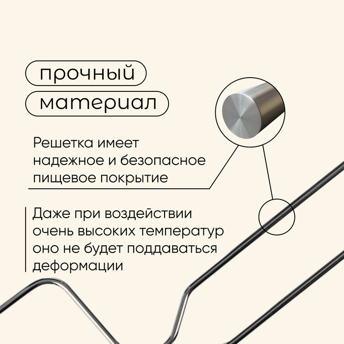 * Рабочая поверхность выполнена из хромированной стали с коррозионностойким покрытием. Даже при воздействии высокой температуры материал не деформируется. Данное покрытие препятствует появлению ржавчины и окислению металла.