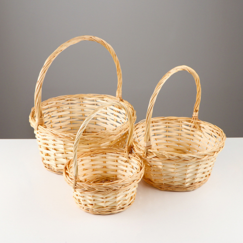 Набор корзин плетёных, ива, 3 шт., серо-бежевый цвет, большие