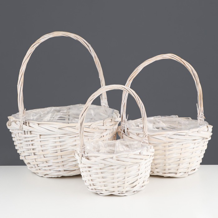 Набор корзин плетёных «Вьюнок», 3 шт., 30×14.5/36 см, 24×12.5/31 см, 19.5×10.5/25.5 см, ива