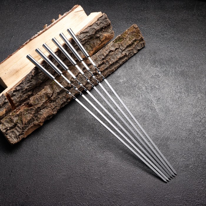 Набор шампуров 6 шт., рабочая часть - 32 см, ширина - 4 мм, толщина - 2 мм, с металлической ручкой