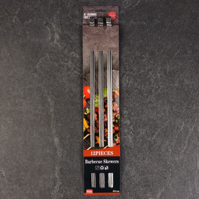 Набор шпажек - шампуров для шашлыка, 12 шт., 45 см, металлические