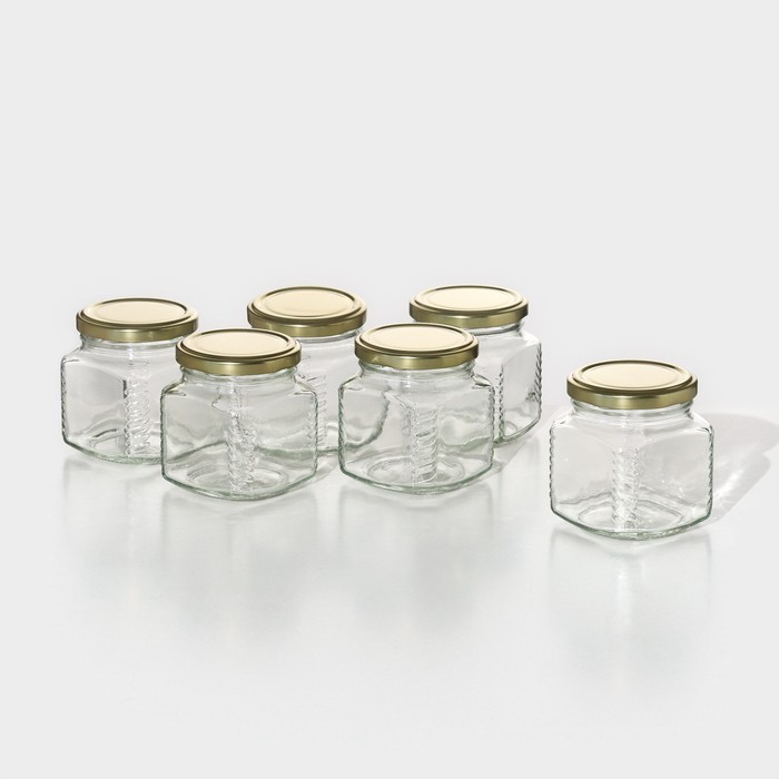 Набор стеклянных банок с крышкой для консервации, ТО-66 мм, 200-250 мл, 6 шт.