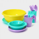 Забудьте о мытье посуды после большого праздника или пикника с этим большим набором одноразовой пластиковой посуды. Включает все необходимое для комфортного приема пищи шестью гостями: тарелки, стаканы и столовые приборы. Идеальное решение для больших мероприятий, кейтеринга и выездных пикников.