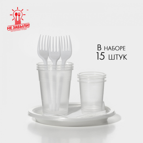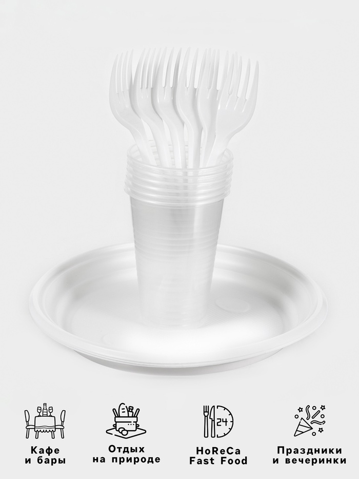 Набор пластиковой одноразовой посуды на 6 персон Не ЗАБЫЛИ! «Пикник», тарелки d=20.5 см, стаканы 200 мл, вилки