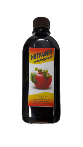 Рабочая концентрация: при опрыскивании плодовых деревьев 3% (300г препарата нитрафена на 10л воды), смородины, крыжовника, малины 2% (200г на 10л воды).