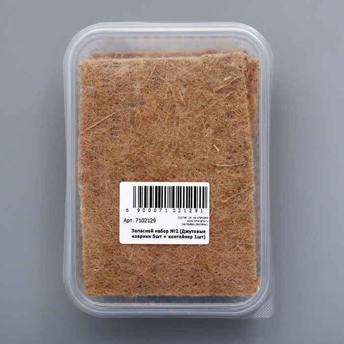 Состав: 5 джутовый ковриков, 1 контейнер, 1 крышка для контейнера.