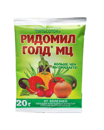 Чаще всего препарат «Ридомил Голд», инструкция по применению которого будет рассмотрена нами ниже, используют для профилактики: фитофтороза и альтернариоза томатов или картофеля, пероноспороза огурцов и лука, милдью винограда. Очень эффективен «Ридомил Голд» именно от пероноспоровых грибов. От мучнисторосяных его не применяют.Признаки милдью Это грозное заболевание может уничтожить весь урожай винограда буквально за несколько дней. Как и у огурцов, листья лоз сначала покрываются маслянистым желтым налетом сверху и грибницей снизу, а затем подсыхают и опадают. Кожица пораженных ягод винограда сморщивается. В результате они принимают грушевидную форму. Не поражает милдью только уже созревшие ягоды. В целях профилактики подобных неприятностей и следует использовать «Ридомил Голд». Применение для винограда его считается даже более эффективным, чем традиционной бордоской жидкости.