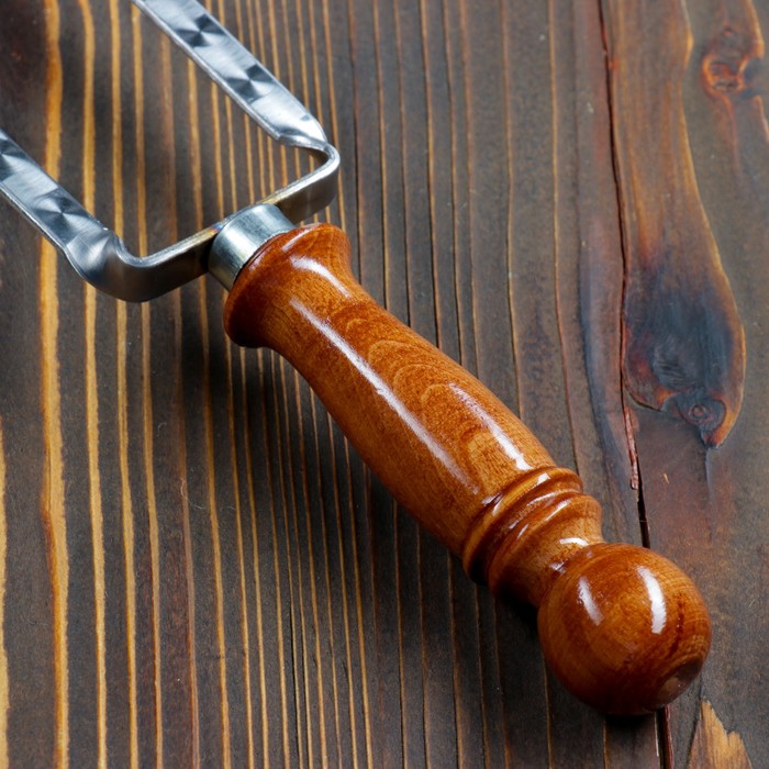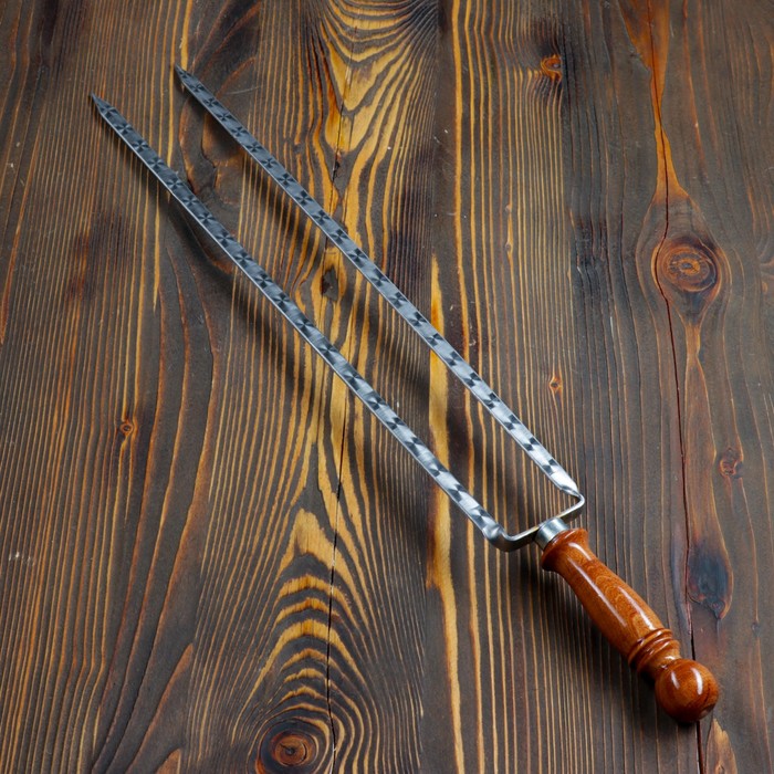 Двойной вилка-шампур с деревянной ручкой, с узором, 50 см