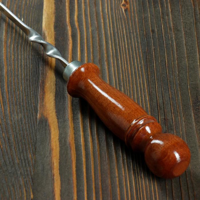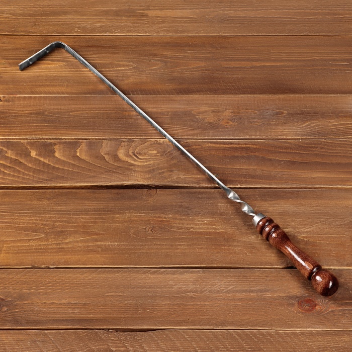 Кочерга узбекская с деревянной ручкой «Фигурная», рабочая длина - 45 см, ширина - 12 мм, толщина - 2.5 мм, с узором
