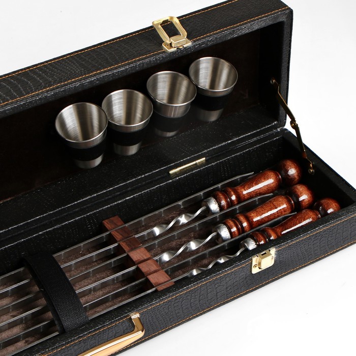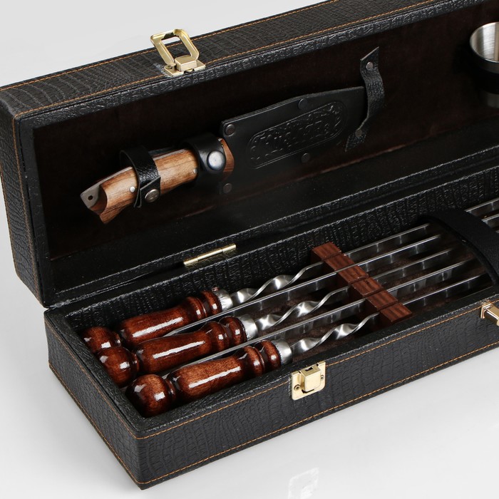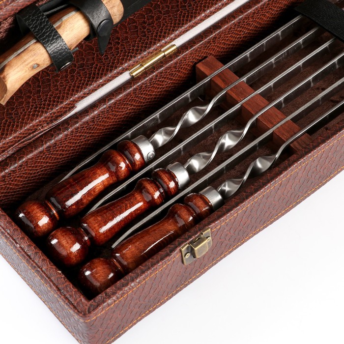 Набор с шампурами подарочный «Элит-S» №12, в коробке из эко-кожи