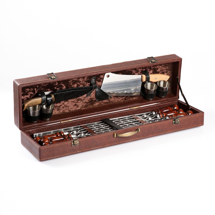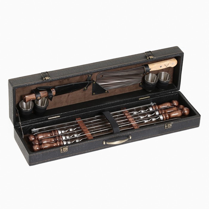 Набор с шампурами подарочный «Элит-М» №11, в коробке из эко-кожи