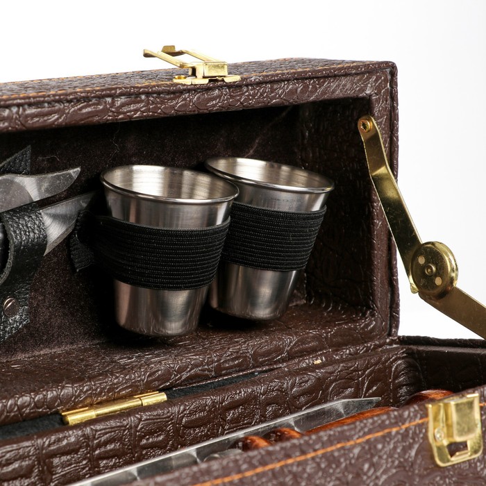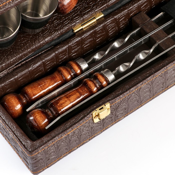 Набор с шампурами подарочный «Элит-XS» №13, в коробке из эко-кожи