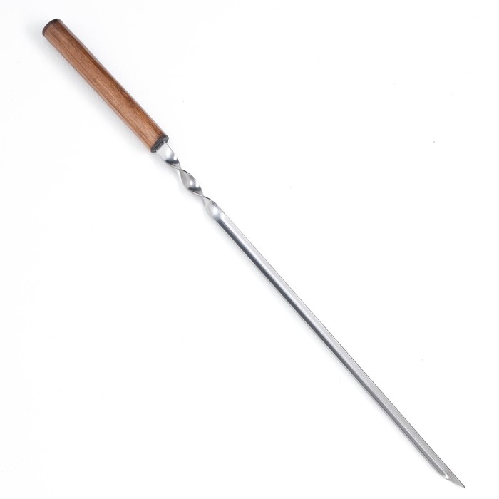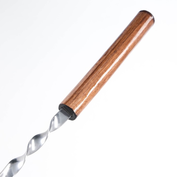 Рабочая часть шампура выполнена из нержавеющей стали толщиной 2 мм. Деревянная ручка обеспечивает удобство использования при переворачивании мяса.