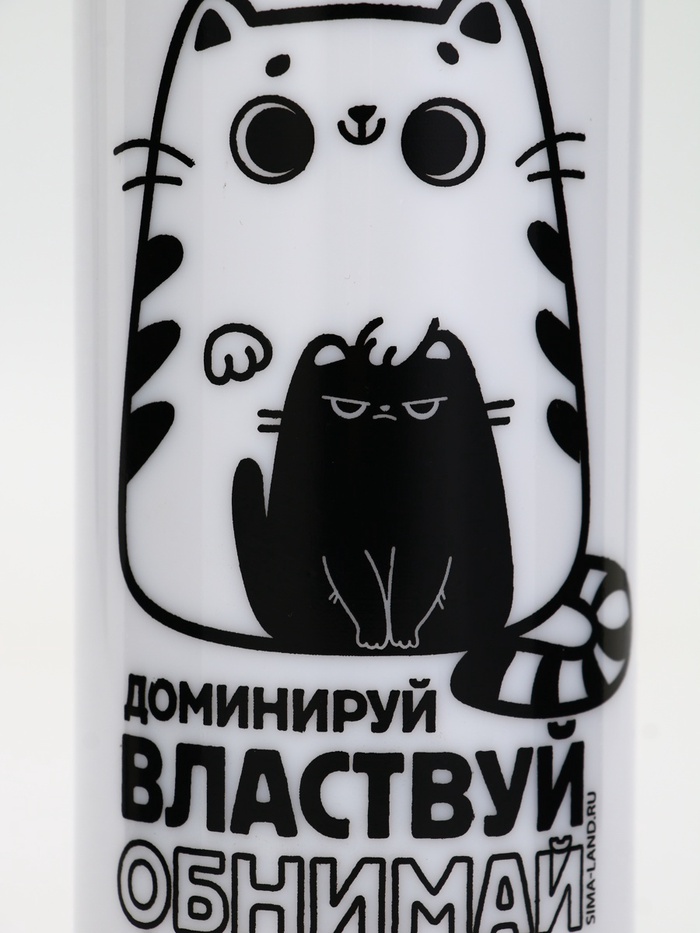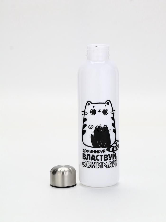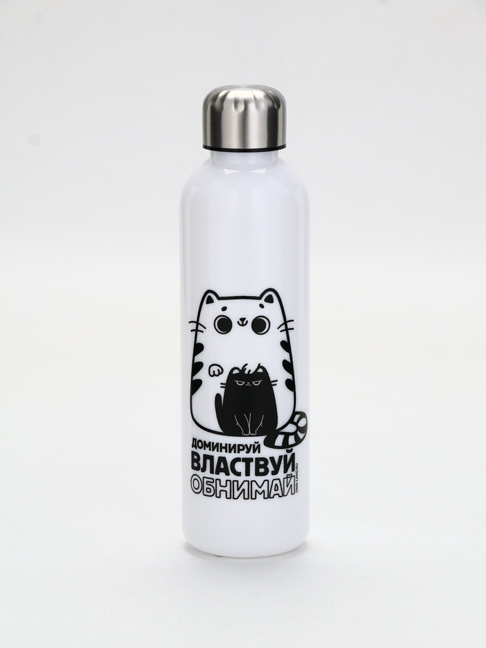 Бутылка «Обнимай и властвуй» — это лёгкий, тёплый напоминатель о том, что сила начинается с заботы. Белый корпус и надпись с оттенком доброй иронии создают образ, в котором сочетаются мягкость и уверенность. Подходит для повседневного использования — в офисе, на прогулке или в дороге — и станет неформальным, но искренним подарком.